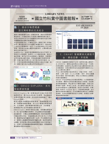 實中園地 The Newsletter of NEHS 114年第 30卷第 5期 12 竹科實中圖書館電子資源特刊