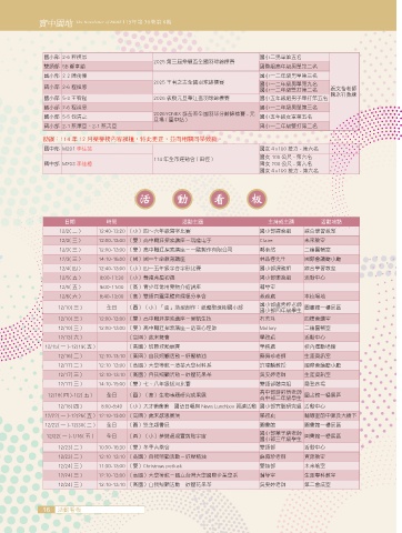 日期 時間 活動主題 主持或主講 活動地點