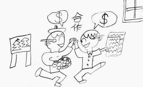 首先作家要先寫自己想要的文章,寫好之後再拿給畫家,畫家看完文章以後就開始畫畫了。畫家畫好一張,就要拿給作家看,要作家同意才可以。畫好之後,就拿去影印,再來把紙做成書的樣子就好了。作家和畫家要不能吵架,聽對方說的話。